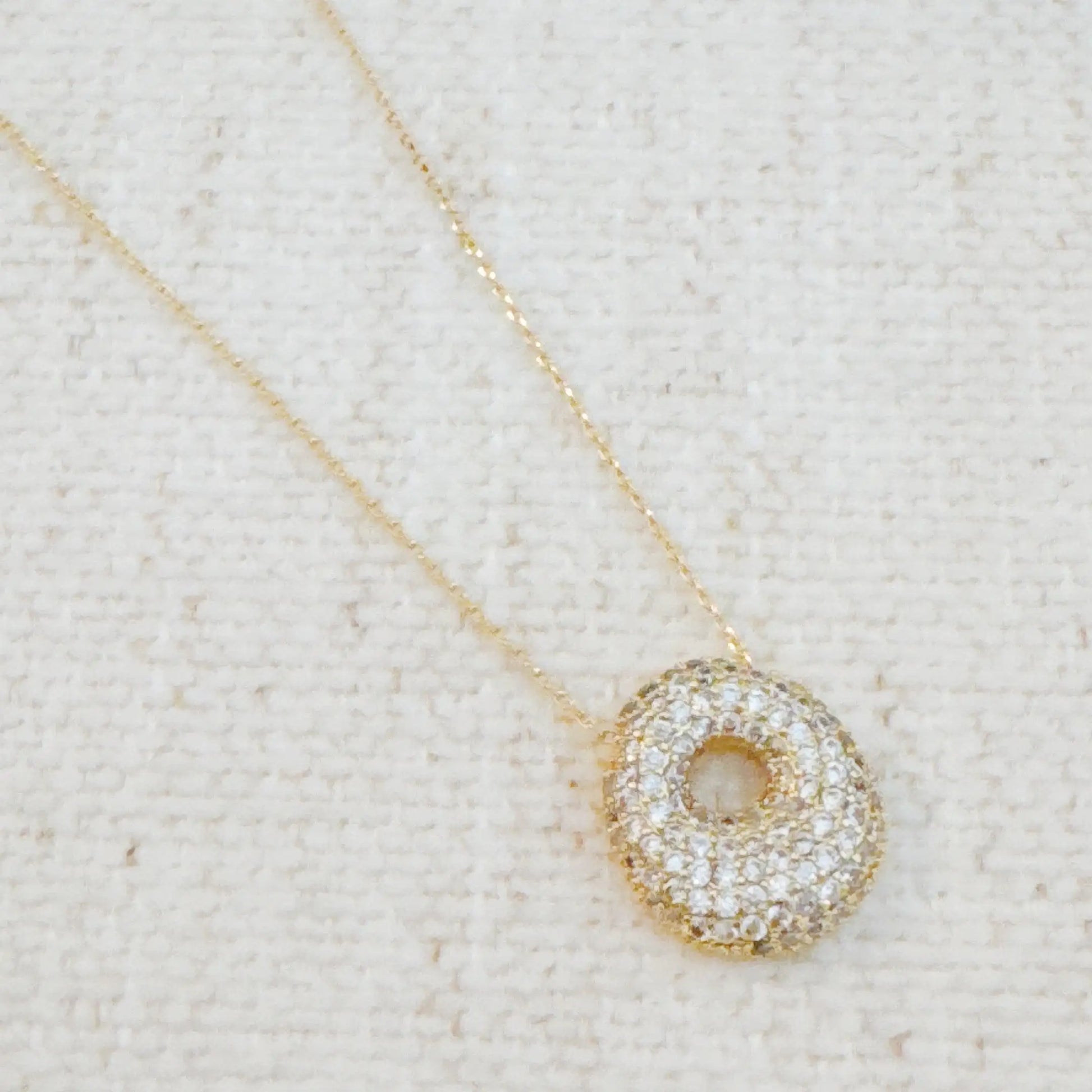 Personalized Initial Necklace with puffy crystal-adorned letters. 18k gold-plated brass with cubic zirconia, adjustable 16" chain plus 2" extender. Lead and nickel-free. Wear alone or layered.