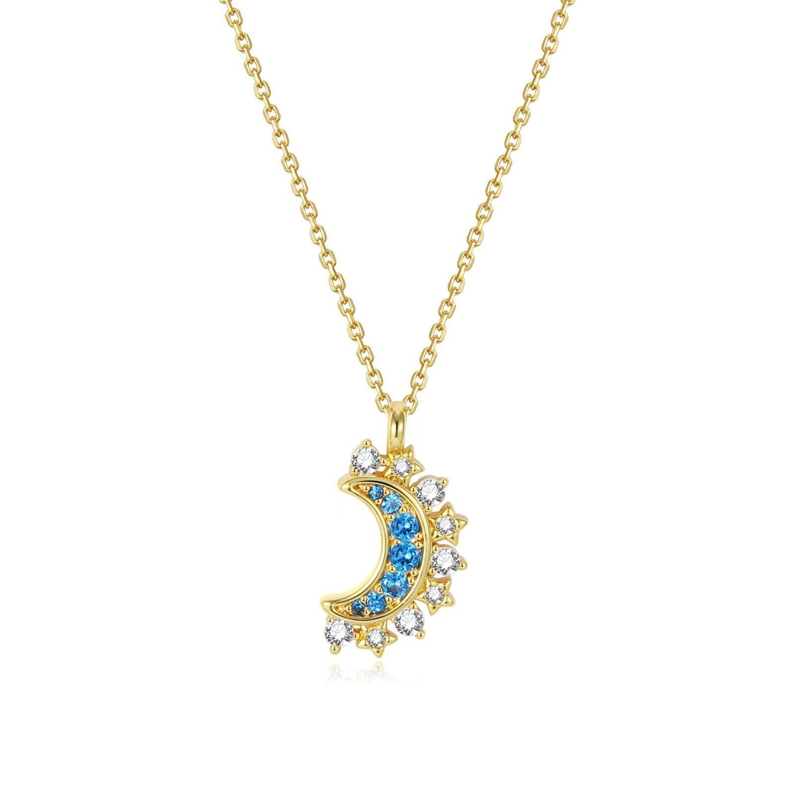 Elegant Moon and Sun couple necklace featuring micro inlay and zircon mosaic. Available in various golden and white gold colors with copper material. Comes with 1 or 2 pieces per pack. Perfect stylish clasp accessory for any occasion.